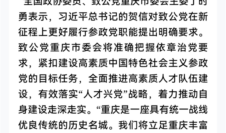 致公党重庆市委会召开学习贯彻落实习近平总书记重要贺信精神专题会议